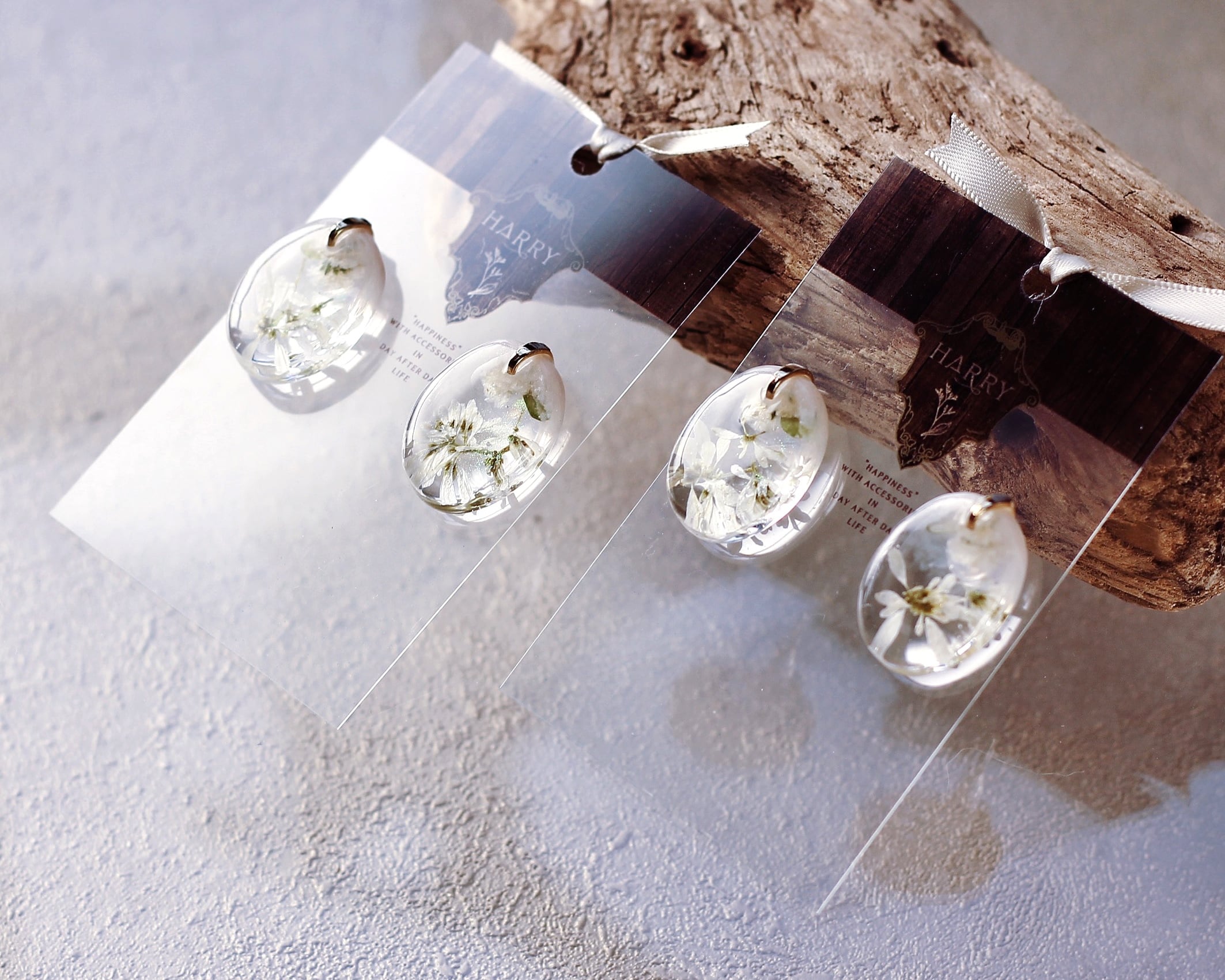 みずみずしく、透明感たっぷりの耳飾りに仕立てた