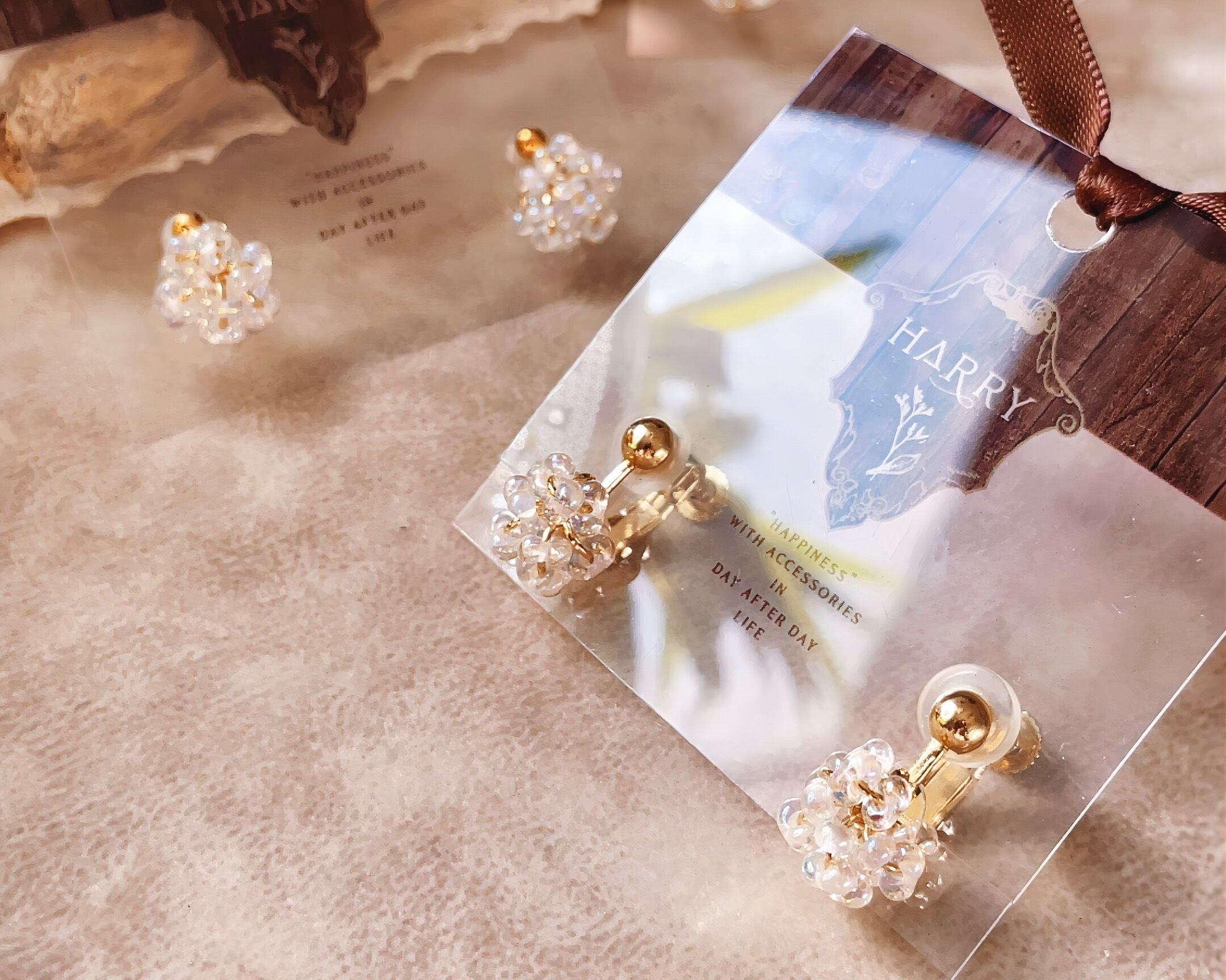お客様がご購入いただいた商品の金具に合わせて、ピアスまたはイヤリングを同封いたします
